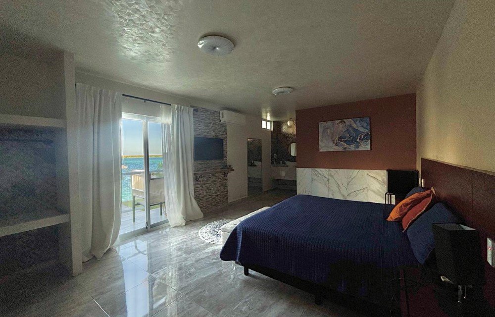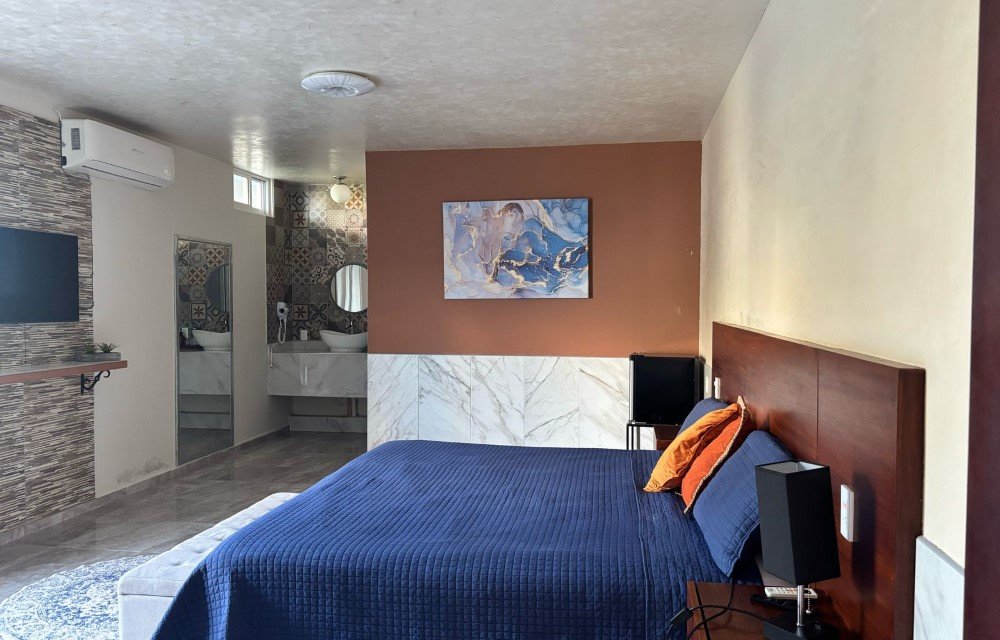 La Suite Awazul ofrece una experiencia de alojamiento superior con espacios amplios y diseño elegante, ideal para parejas o familias que buscan mayor confort y privacidad. Equipada con aire acondicionado, baño exclusivo, Wi-Fi gratuito y detalles pensados para tu descanso, esta suite crea un refugio perfecto tras descubrir la laguna de los Siete Colores. Su atmósfera serena y ubicación estratégica hacen de cada estancia un momento memorable en Bacalar.